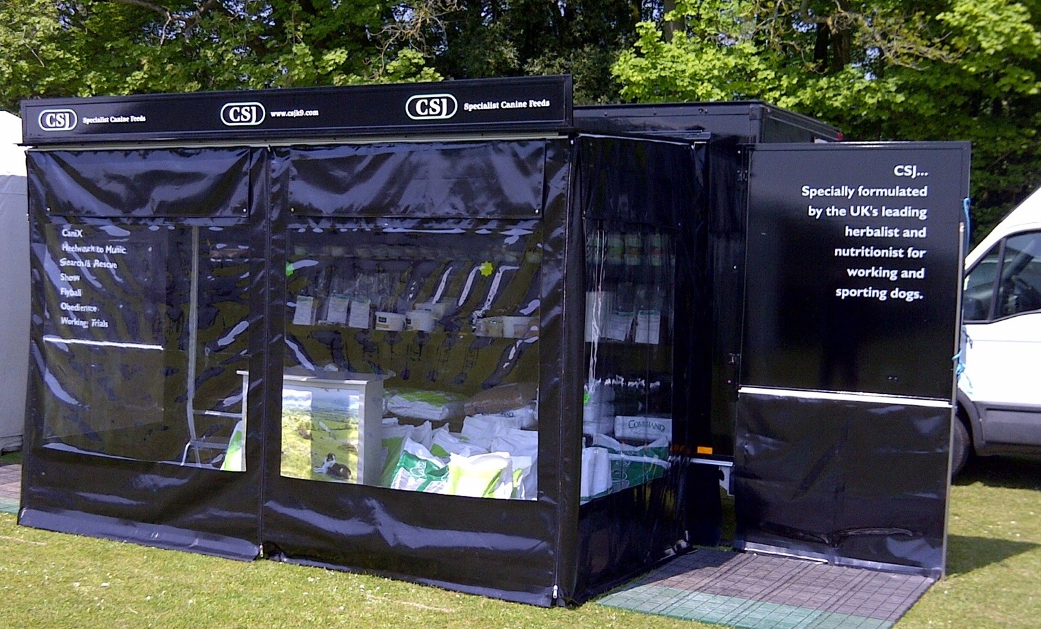 The unit comes with a 3 sided colour coordinated awning, with display windows which can be used with the font section rolled up when attending an event in wet weather conditions.