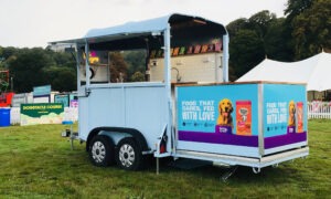 Petfood exhibition trailers first of 3 completed exhibition trailer for Skinners Petfoods on its way to the first event of the season With ground level open plan display shelving.